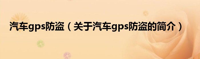 本文關于汽車gps防盜的簡介就講解完畢,希望對大家有所幫助。