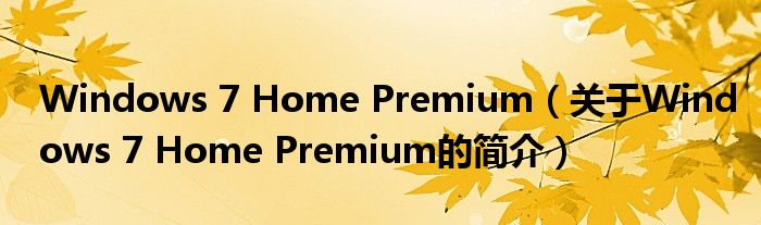 大家好,Windows 7 Home Premium,關于Windows 7 Home Premium的簡介很多人還不知道,現在讓我們一起來看看吧!