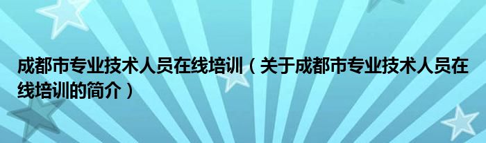 本文關于成都市專業技術人員在線培訓的簡介就講解完畢,希望對大家有所幫助。