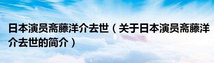 本文關于日本演員齋藤洋介去世的簡介就講解完畢,希望對大家有所幫助。