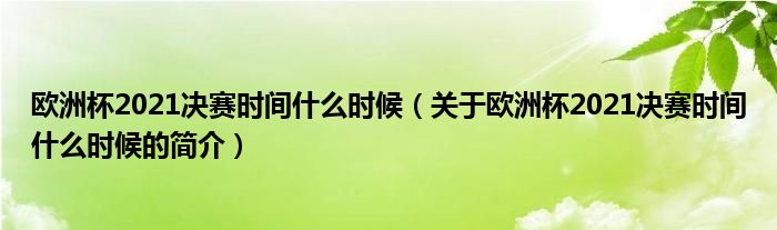本文關(guān)于歐洲杯2021決賽時間什么時候的簡介就講解完畢,希望對大家有所幫助。