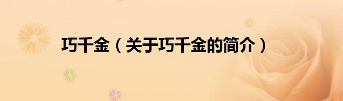 大家好,巧千金,關于巧千金的簡介很多人還不知道,現在讓我們一起來看看吧!