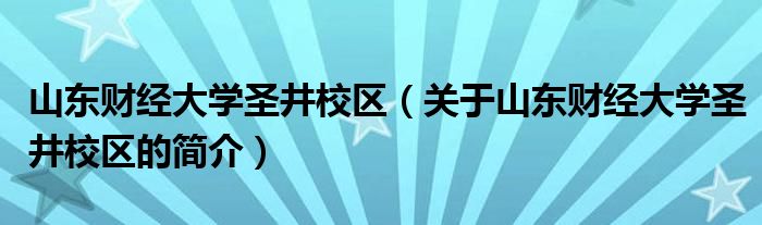 本文關于山東財經大學圣井校區的簡介就講解完畢,希望對大家有所幫助。