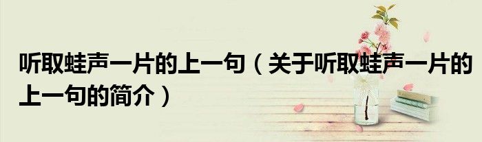 大家好,聽取蛙聲一片的上一句,關于聽取蛙聲一片的上一句的簡介很多人還不知道,現在讓我們一起來看看吧!