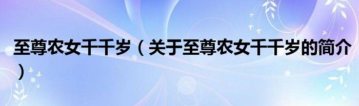 本文關于至尊農女千千歲的簡介就講解完畢,希望對大家有所幫助。