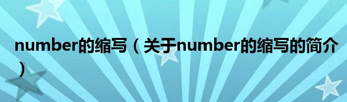 本文關于number的縮寫的簡介就講解完畢,希望對大家有所幫助。