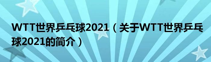 本文關于WTT世界乒乓球2021的簡介就講解完畢,希望對大家有所幫助。