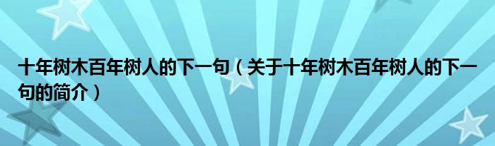 本文關于十年樹木百年樹人的下一句的簡介就講解完畢,希望對大家有所幫助。