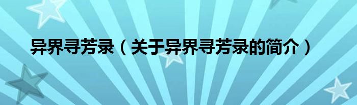 本文關于異界尋芳錄的簡介就講解完畢,希望對大家有所幫助。