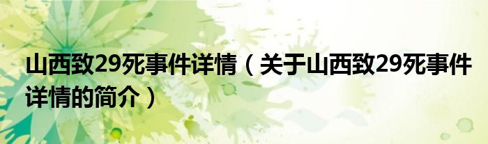 本文關于山西致29死事件詳情的簡介就講解完畢,希望對大家有所幫助。