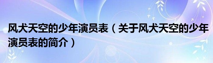 本文關于風犬天空的少年演員表的簡介就講解完畢,希望對大家有所幫助。