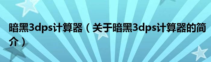 本文關(guān)于暗黑3dps計(jì)算器的簡(jiǎn)介就講解完畢,希望對(duì)大家有所幫助。