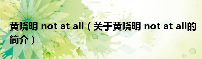 本文關于黃曉明 not at all的簡介就講解完畢,希望對大家有所幫助。