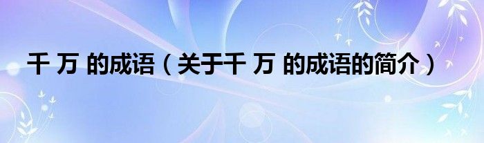 本文關于千 萬 的成語的簡介就講解完畢,希望對大家有所幫助。