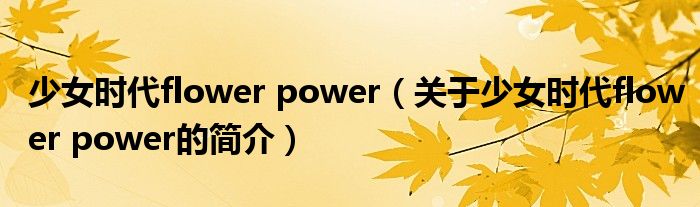 本文關于少女時代flower power的簡介就講解完畢,希望對大家有所幫助。
