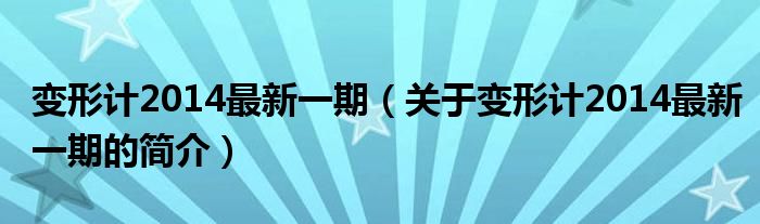 本文關(guān)于變形計(jì)2014最新一期的簡(jiǎn)介就講解完畢,希望對(duì)大家有所幫助。