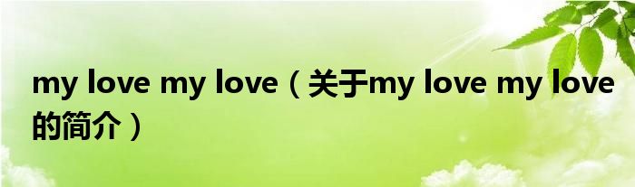 大家好,my love my love,關于my love my love的簡介很多人還不知道,現(xiàn)在讓我們一起來看看吧!