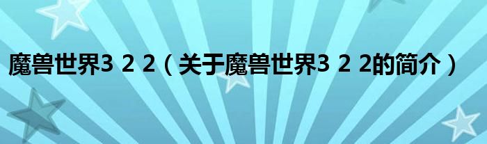 本文關于魔獸世界3 2 2的簡介就講解完畢,希望對大家有所幫助。