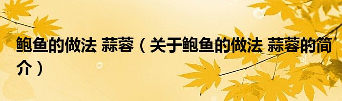 本文關于鮑魚的做法 蒜蓉的簡介就講解完畢,希望對大家有所幫助。
