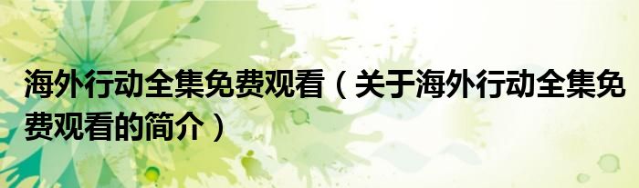 本文關(guān)于海外行動全集免費(fèi)觀看的簡介就講解完畢,希望對大家有所幫助。