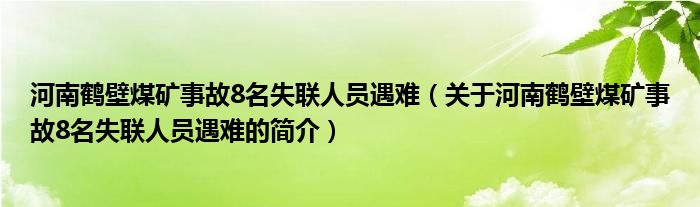 本文關于河南鶴壁煤礦事故8名失聯人員遇難的簡介就講解完畢,希望對大家有所幫助。