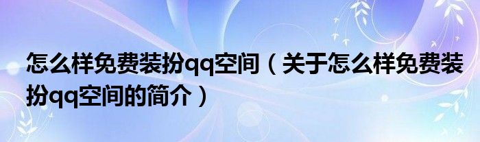 本文關于怎么樣免費裝扮qq空間的簡介就講解完畢,希望對大家有所幫助。