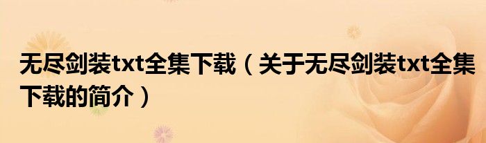 本文關(guān)于無盡劍裝txt全集下載的簡介就講解完畢,希望對(duì)大家有所幫助。