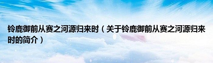 大家好,鈴鹿御前從賽之河源歸來(lái)時(shí),關(guān)于鈴鹿御前從賽之河源歸來(lái)時(shí)的簡(jiǎn)介很多人還不知道,現(xiàn)在讓我們一起來(lái)看看吧!