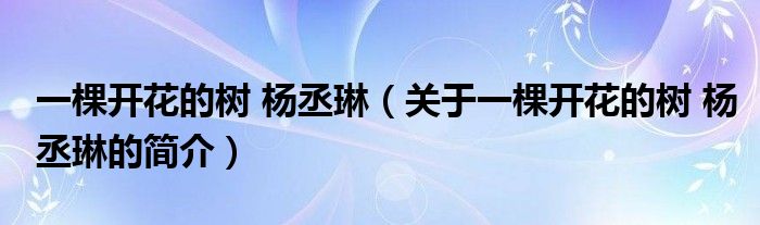 本文關(guān)于一棵開花的樹 楊丞琳的簡介就講解完畢,希望對大家有所幫助。