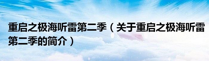 大家好,重啟之極海聽雷第二季,關于重啟之極海聽雷第二季的簡介很多人還不知道,現在讓我們一起來看看吧!