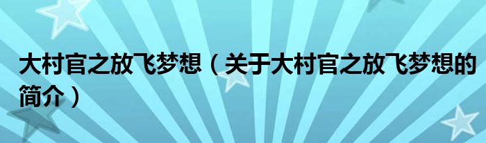 本文關于大村官之放飛夢想的簡介就講解完畢,希望對大家有所幫助。