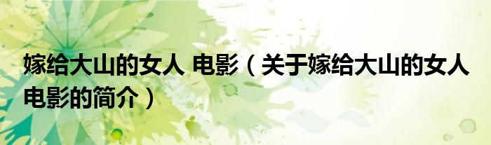 本文關(guān)于嫁給大山的女人 電影的簡介就講解完畢,希望對大家有所幫助。