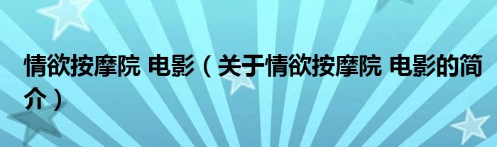 本文關于情欲按摩院 電影的簡介就講解完畢,希望對大家有所幫助。