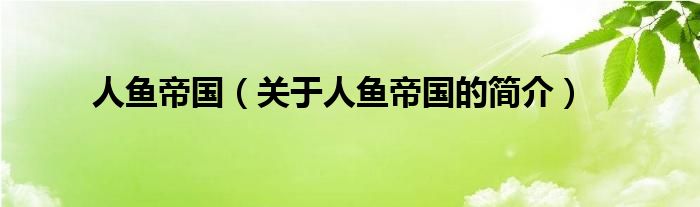 本文關于人魚帝國的簡介就講解完畢,希望對大家有所幫助。