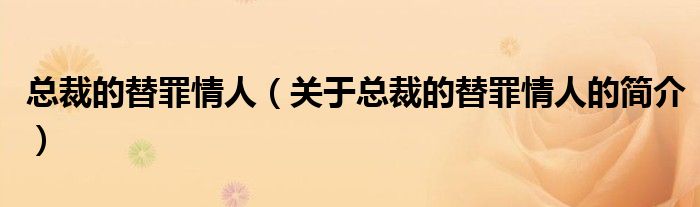 本文關于總裁的替罪情人的簡介就講解完畢,希望對大家有所幫助。
