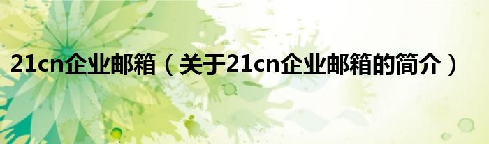 大家好,21cn企業郵箱,關于21cn企業郵箱的簡介很多人還不知道,現在讓我們一起來看看吧!