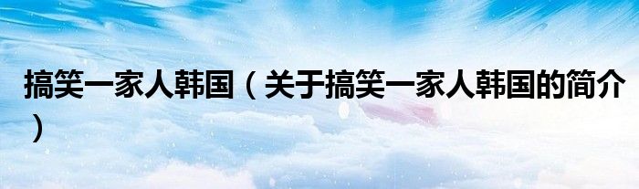 大家好,搞笑一家人韓國,關于搞笑一家人韓國的簡介很多人還不知道,現在讓我們一起來看看吧!