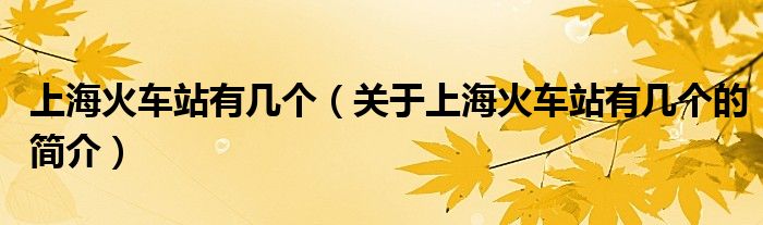 本文關于上?;疖囌居袔讉€的簡介就講解完畢,希望對大家有所幫助。