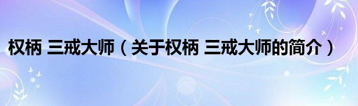 本文關(guān)于權(quán)柄 三戒大師的簡(jiǎn)介就講解完畢,希望對(duì)大家有所幫助。