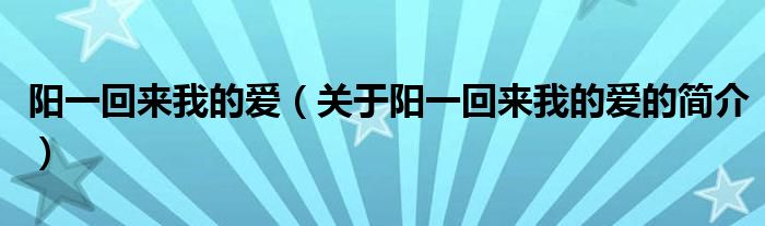 本文關(guān)于陽(yáng)一回來(lái)我的愛(ài)的簡(jiǎn)介就講解完畢,希望對(duì)大家有所幫助。
