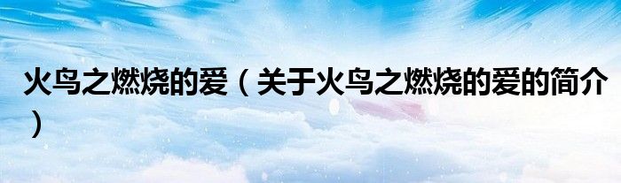 本文關(guān)于火鳥(niǎo)之燃燒的愛(ài)的簡(jiǎn)介就講解完畢,希望對(duì)大家有所幫助。