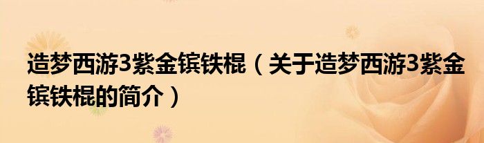 本文關于造夢西游3紫金鑌鐵棍的簡介就講解完畢,希望對大家有所幫助。