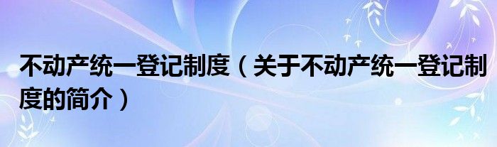 本文關(guān)于不動產(chǎn)統(tǒng)一登記制度的簡介就講解完畢,希望對大家有所幫助。