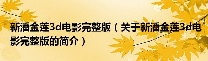 本文關于新潘金蓮3d電影完整版的簡介就講解完畢,希望對大家有所幫助。