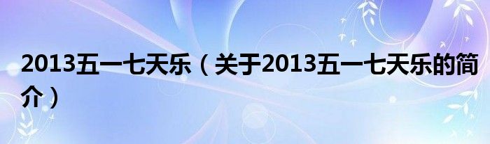 本文關于2013五一七天樂的簡介就講解完畢,希望對大家有所幫助。