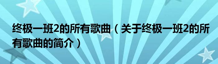 大家好,終極一班2的所有歌曲,關于終極一班2的所有歌曲的簡介很多人還不知道,現在讓我們一起來看看吧!