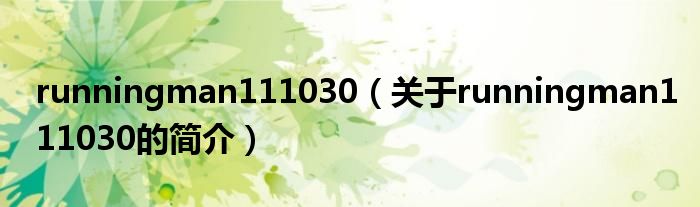 本文關(guān)于runningman111030的簡(jiǎn)介就講解完畢,希望對(duì)大家有所幫助。