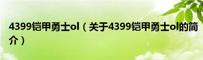 本文關于4399鎧甲勇士ol的簡介就講解完畢,希望對大家有所幫助。