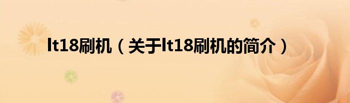 本文關于lt18刷機的簡介就講解完畢,希望對大家有所幫助。