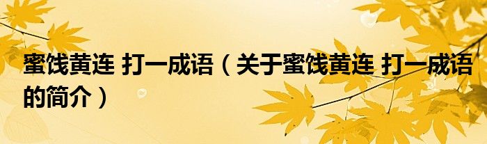 本文關于蜜餞黃連 打一成語的簡介就講解完畢,希望對大家有所幫助。